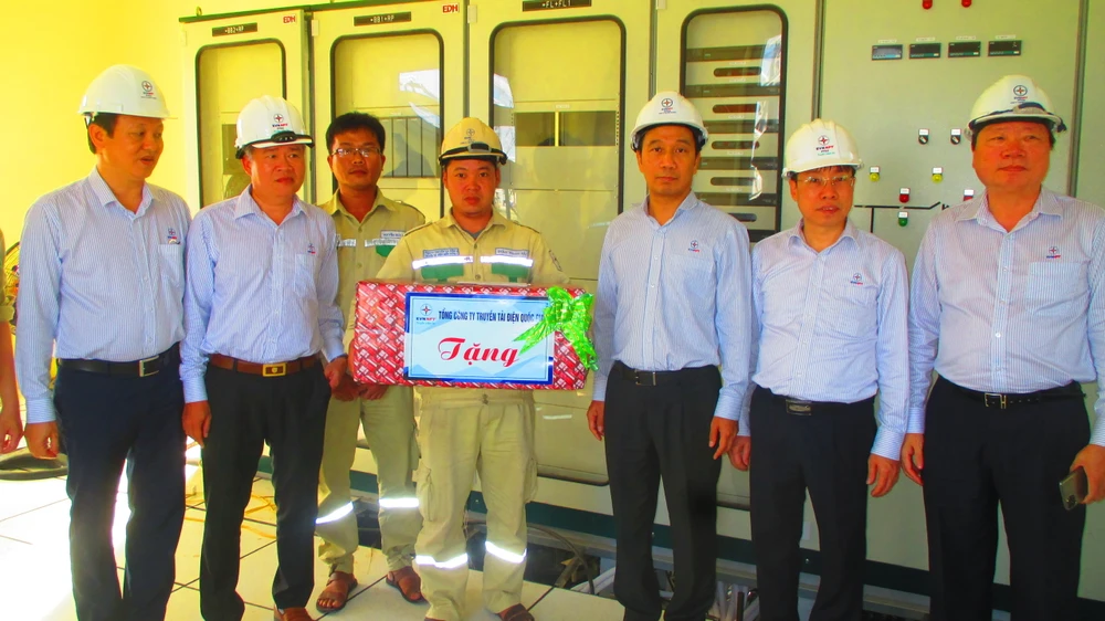 Đoàn công tác EVNNPT tặng quà Trung tâm Dịch vụ kỹ thuật 2, đơn vị đang tham gia tư vấn giám sát mở rộng Trạm biến áp 500 kV Dốc Sỏi.