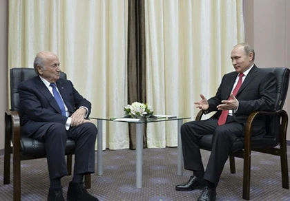 Tổng thống V.Putin tiếp Chủ tịch FIFA S. Blatter hôm 20-4 tại Sochi