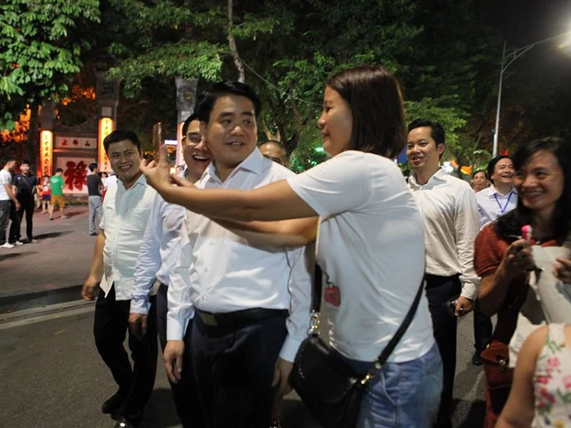 Nhận thấy sự có mặt của Chủ tịch TP, một số người dân đã chạy tới để chụp ảnh "tự sướng".