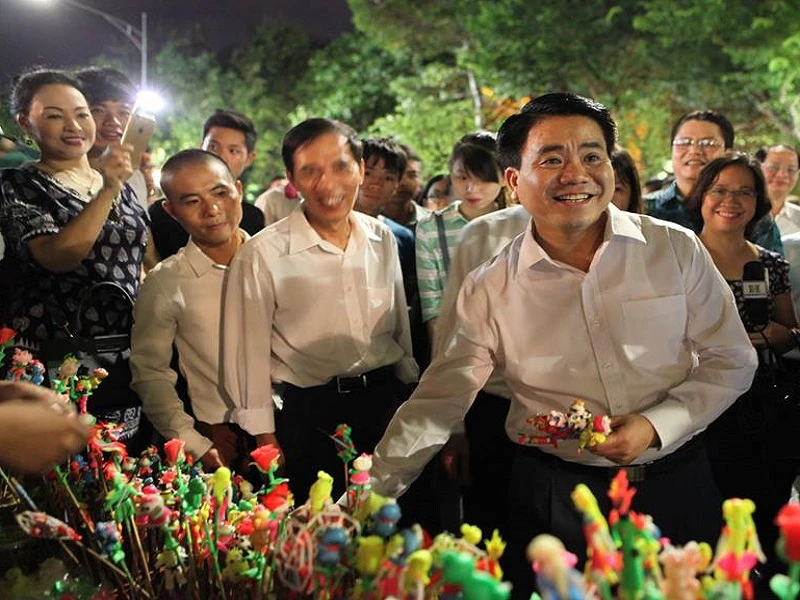 Ngay sau buổi lễ, Chủ tịch Hà Nội cùng một số quan chức đã đi dạo phố, ghi nhận không khí của ngày đầu tiên tổ chức không gian đi bộ. Rất thân thiện, Chủ tịch Nguyễn Đức Chung đã đích thân ghé vào một cửa hàng tò he, sau đó mua và tặng cho một số người.
