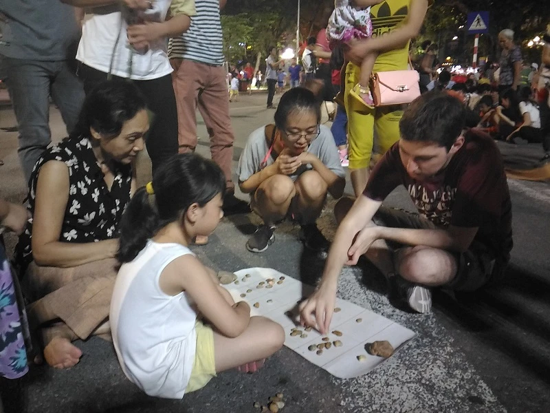 Đáng chú ý, không chỉ tạo không gian đi bộ, nhiều trò chơi dân gian như: ô quan, chơi chuyền, kéo co, nhảy dây,... cũng được bố trí để tạo sân chơi lành mạnh cho du khách. Không quá bất ngờ, khu vực này là nơi tập trung đông người nhất, bởi đa phần đều bị lôi cuốn vào các trò chơi mà "bình thường không được chơi".
