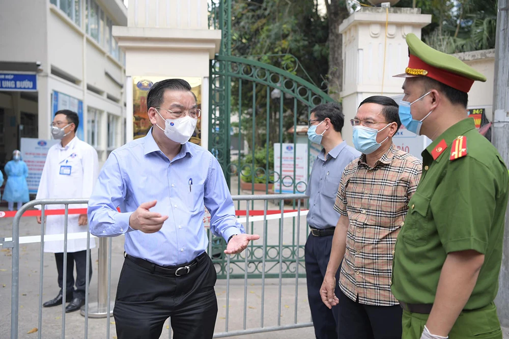 Chủ tịch UBND TP Hà Nội Chu Ngọc Anh kiểm tra công tác phong tỏa Bệnh viện K tại các cơ sở ở huyện Thanh Trì.