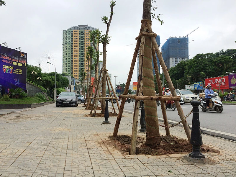 Hệ thống cây xanh được trồng trên đường Nguyễn Chí Thanh đầu năm 2016 theo kỹ thuật mới do Công ty Cây xanh Hà Nội thực hiện.