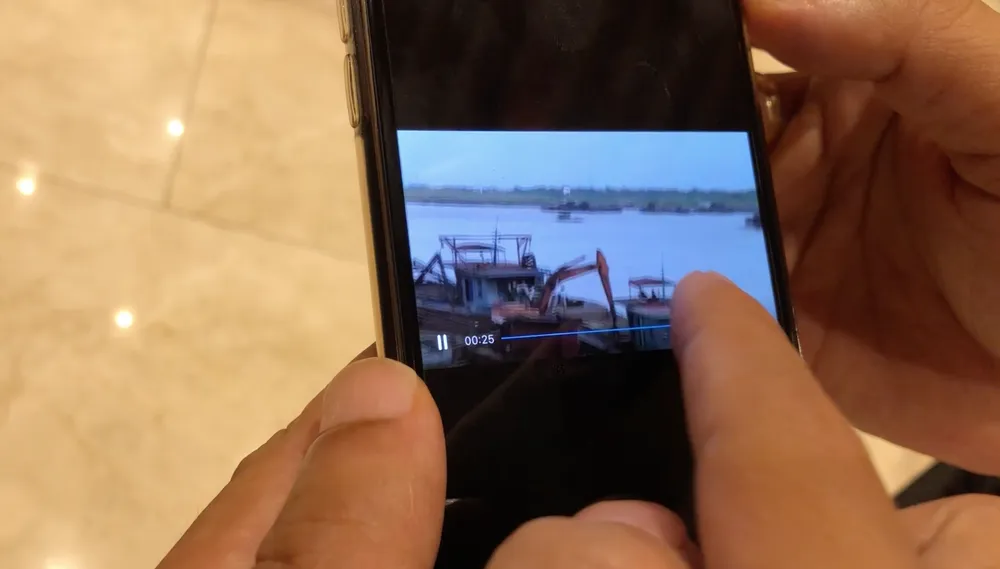 Theo ông Tuấn, clip mà ông vừa báo cáo Chủ tịch UBND TP Hà Nội là clip được quay cách đây hơn 1 tuần. Trong clip có 2 tàu “cát tặc” đang hoạt động chỉ cách tàu của lực lượng cảnh sát đường thuỷ khoảng vài chục m. Tàu cảnh sát đường thuỷ này có số hiệu CSĐT – TDI 03.