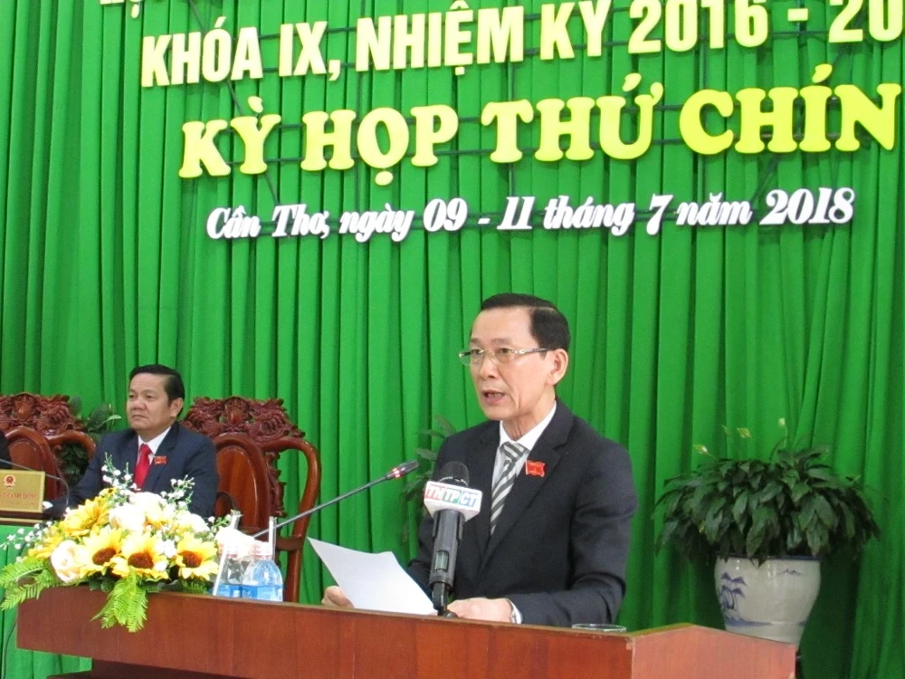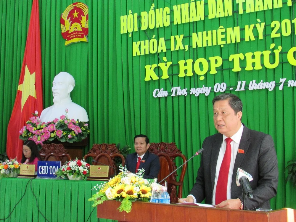 Chủ tịch HĐND TP Cần Thơ phát biểu tại phiên bế mạc kỳ họp thứ 9 HĐND TP Cần Thơ chiều 11-7. Ảnh: NN
