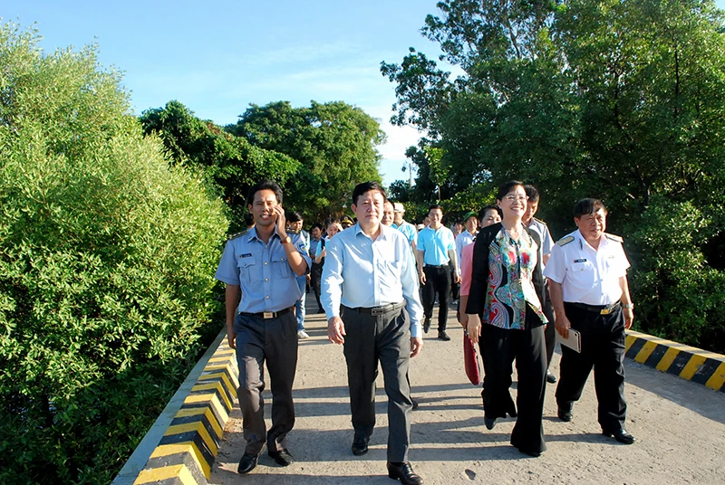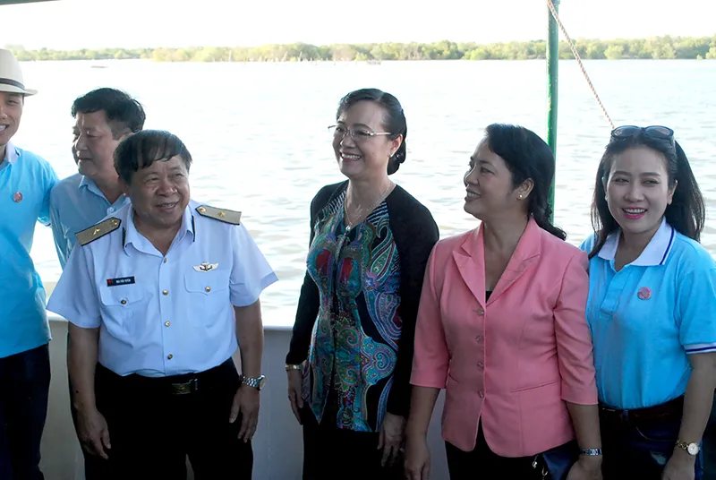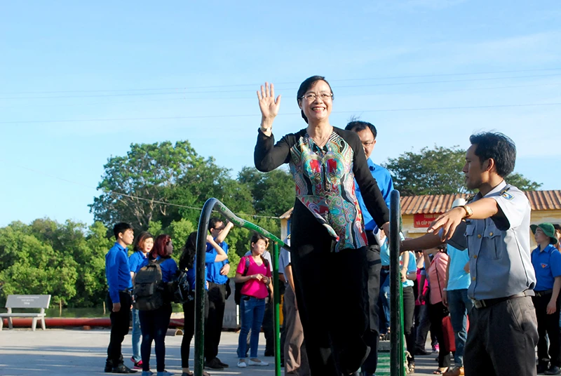 Bà Tâm cùng đoàn ra thăm cuộc sống của các kiểm ngư viên thuộc Chi đội Kiểm ngư số 2.