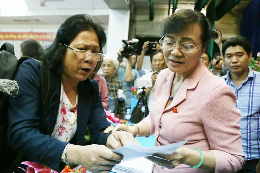 “Bà con hỏi tôi có ray rứt không? Nghe cô bác nói vậy, xót lắm. Vì chính quyền giải quyết vấn đề lớn mà cô bác chưa đồng tình, nghĩa là còn tin chúng tôi, mà mình làm chưa đạt nên ray rứt và chúng tôi vẫn tiếp tục đốc thúc, giám sát... Với trách nhiệm của mình, khi nào còn một ý kiến phản ánh thì vẫn còn đeo bám, giải quyết vấn đề Thủ Thiêm. Tôi hứa như vậy” - bà nói.