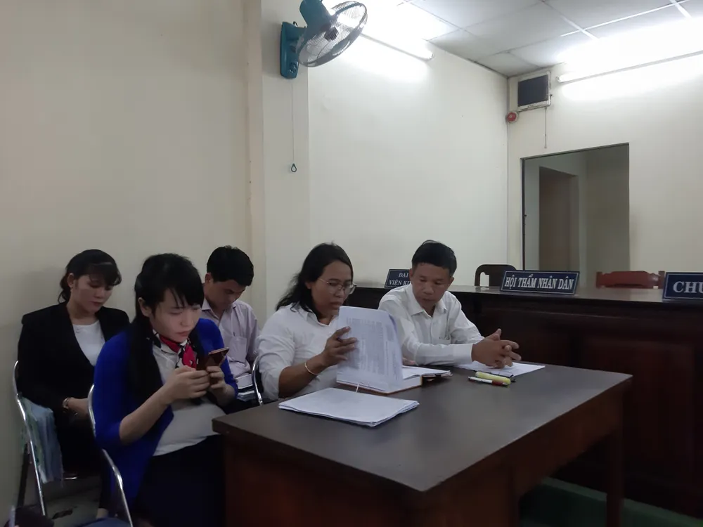 Đại diện cho UBND huyện Bình Chánh, chủ tịch huyện và UBND xã Tân Quý Tây tại tòa. Ảnh: MINH CHUNG