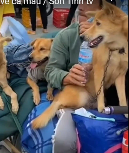 Hình ảnh ông Hùng chở đàn chó về tới Cà Mau được dân mạng đăng tải mấy ngày qua. Ảnh cắt từ mạng xã hội