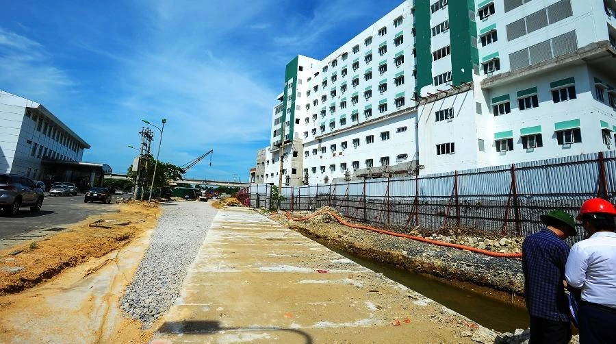 Đoạn đường Hồ Tông Thốc từng bị đóng để xây bệnh viện cổ phần, đang được thi công mở lại.