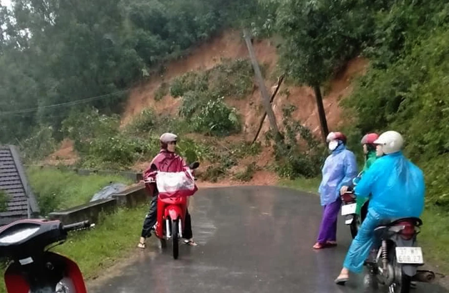 Mưa lũ làm lở núi ách tắc đường ở huyện Nam Đàn (Nghệ An). Ảnh: ĐL