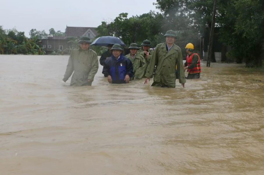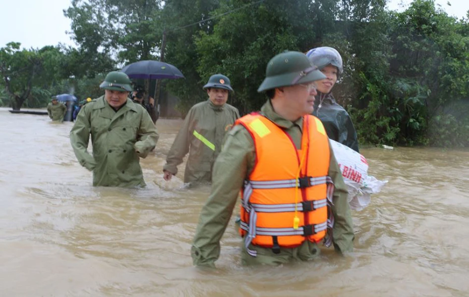 Sáng 30-10, ông Nguyễn Đức Trung- Chủ tịch UBND tỉnh Nghệ An và ông Hoàng Nghĩa Hiếu- Phó Chủ tịch UBND tỉnh Nghệ An cùng đoàn công tác đã đi kiểm tra tình hình ngập lụt trên địa bàn huyện Đô Lương, Thanh Chương (Nghệ An).
