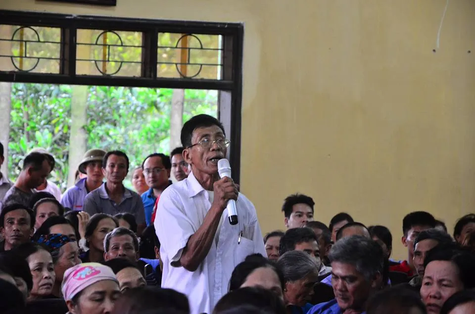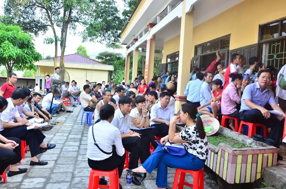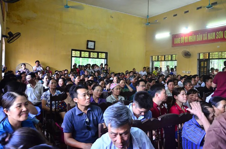 Số lượng người dân đến quá đông, nhiều người phải ngồi nghe từ phía ngoài sân.