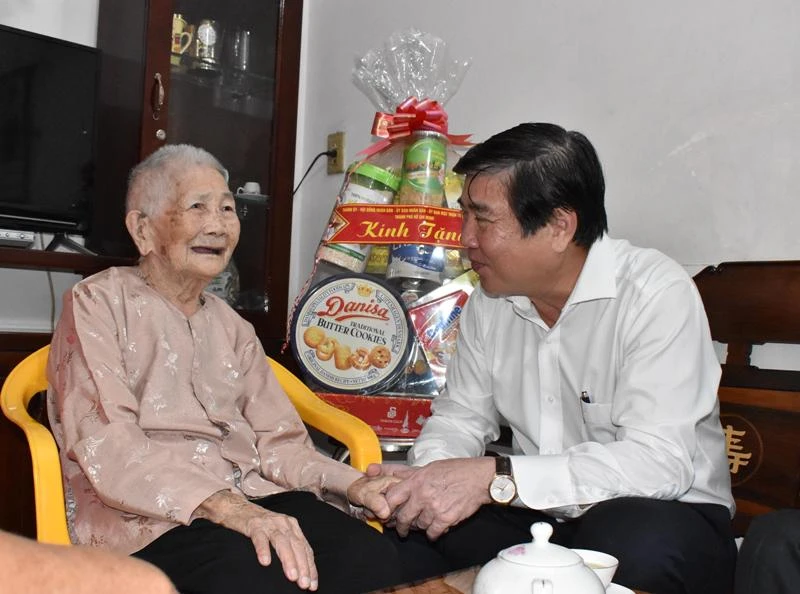 Sau đó, ông Nguyễn Thành Phong cùng đoàn đã đến thăm bà Lê Thị Ít (87 tuổi, là mẹ liệt sĩ) và mẹ Việt Nam anh hùng Võ Thị Lõi (103 tuổi), cũng cư ngụ tại quận Bình Thạnh.