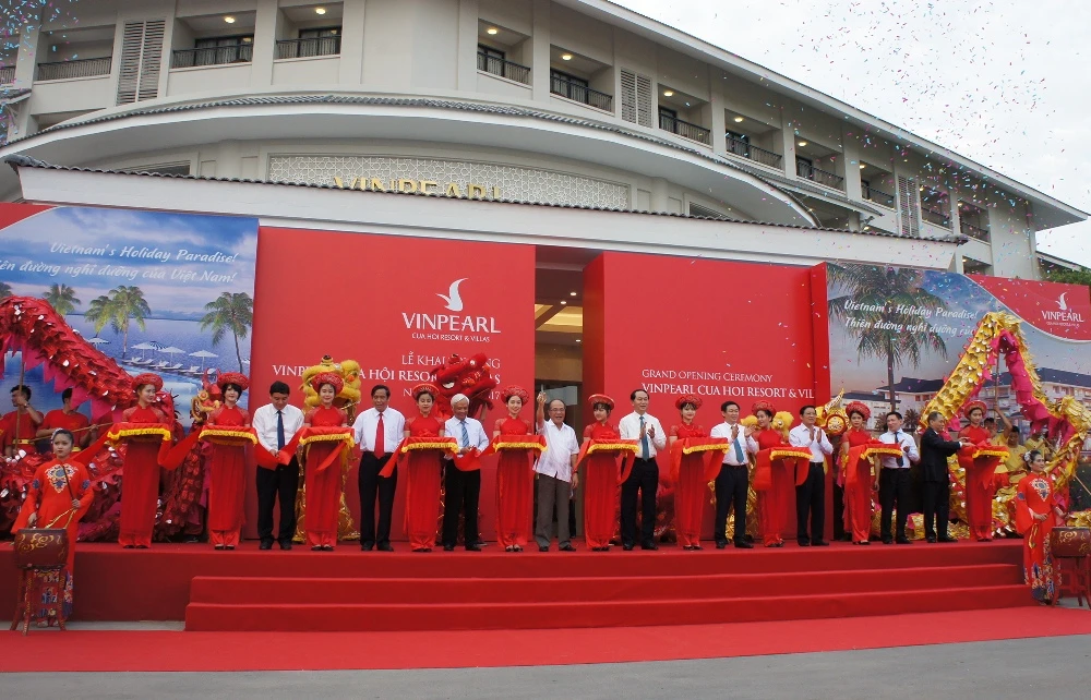 Chủ tịch nước Trần Đại Quang, Phó Thủ tướng Vương Đình Huệ cùng cùng đoàn công tác các Bộ ngành Trung ương đã cắt băng khánh thành Dự án Vinpearl Cửa Hội Resort & Villas