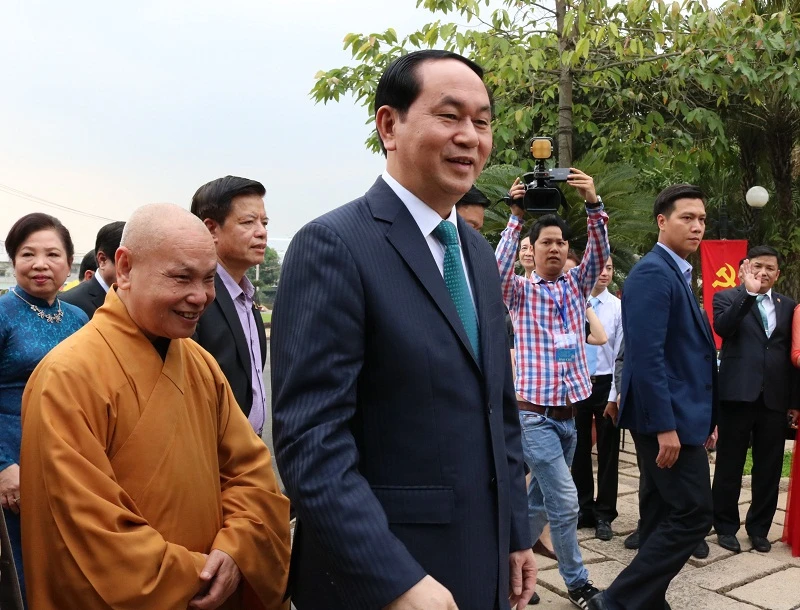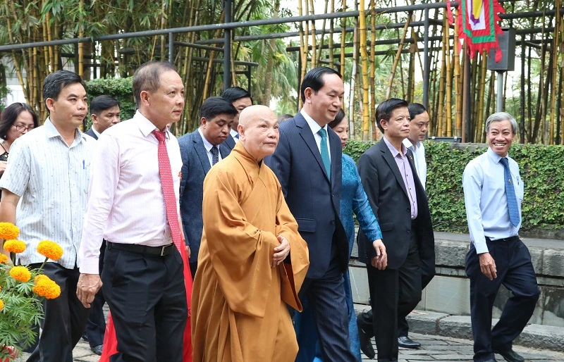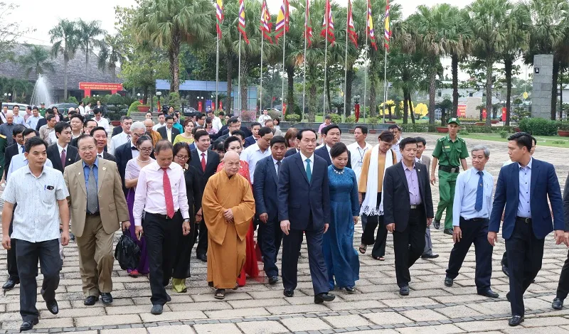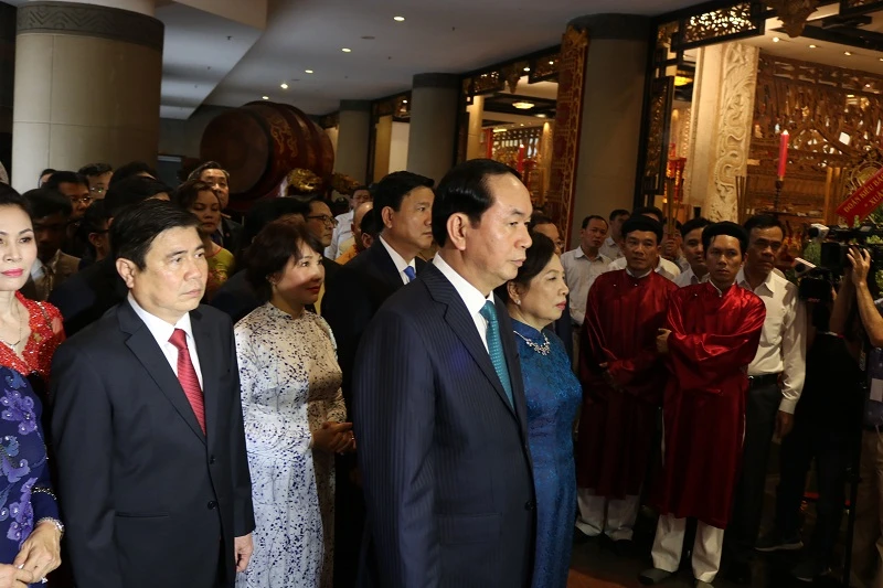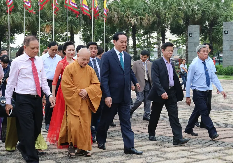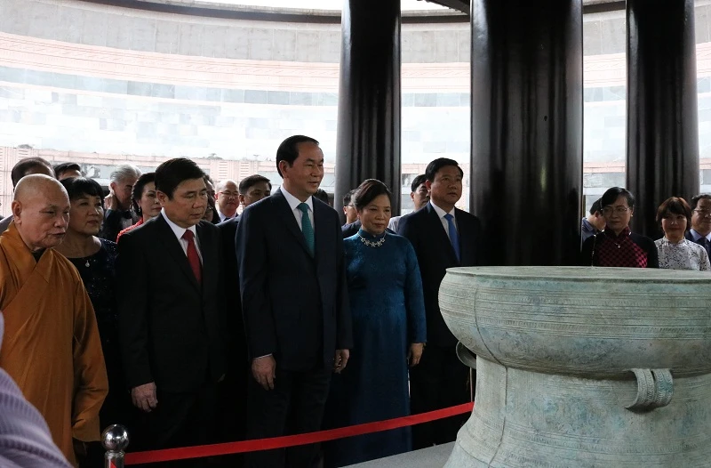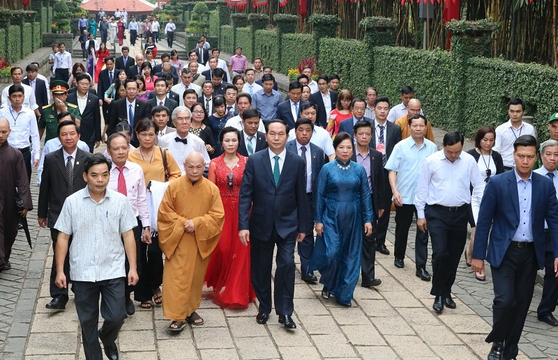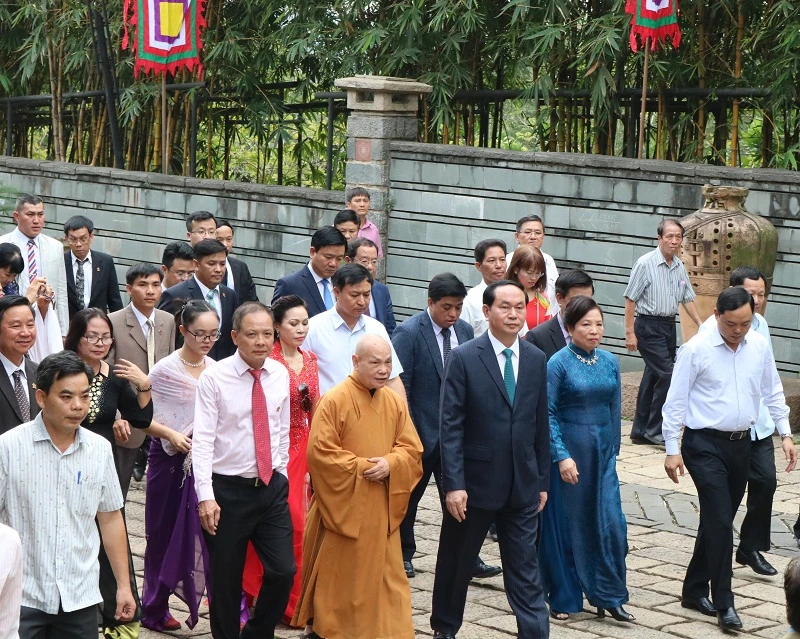 Khoảng 13 giờ 30 phút trưa nay, Chủ tịch nước Trần Đại Quang cùng phu nhân đã đã đến dâng hương các vua hùng, tại Khu tưởng niệm các Vua Hùng- Công viên Lịch sử Văn hóa- Dân tộc (quận 9, TP.HCM).