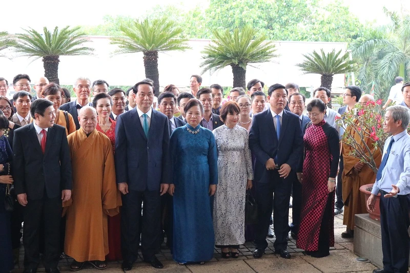 Chủ tịch nước dẫn đầu đoàn kiều bào tiến vào chánh điện.