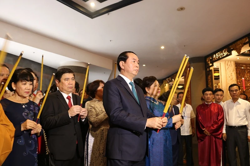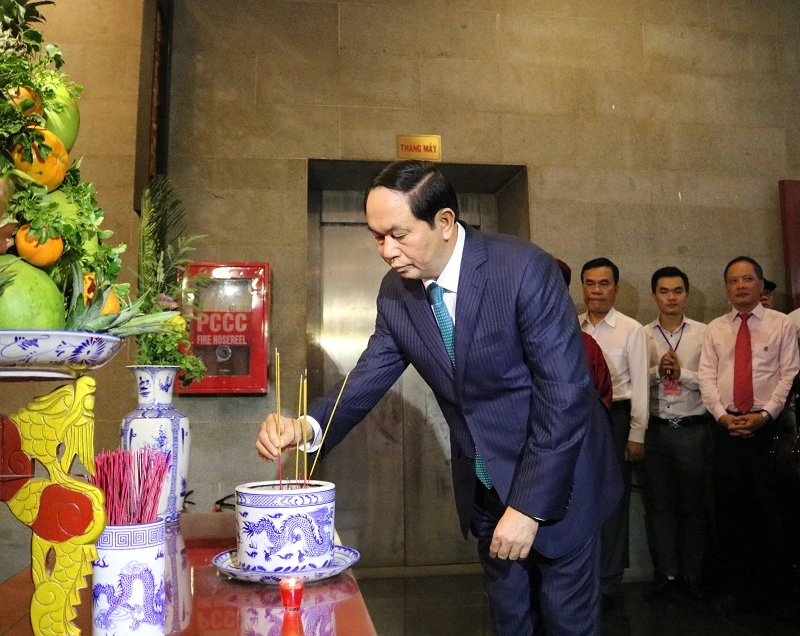 Chủ tịch nước cũng thắp nhang tại nhiều khu bàn thờ khác nhau trong khu di tích.