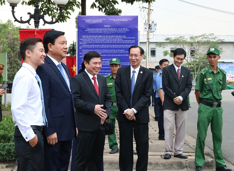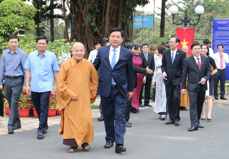 Chủ tịch nước cùng lãnh đạo TP.HCM xem các di tích lịch sử được trưng bày tại khu di tích.