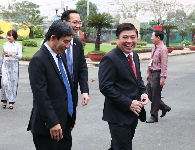 Bí thư Thành ủy TP.HCM Đinh La Thăng (thứ hai từ trái sang) cũng đã đến rất sớm.
