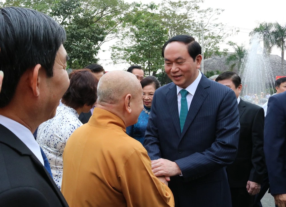 Vừa xuống xe, Chủ tịch nước Trần Đại Quang liền niềm nở bắt tay, chào hỏi mọi người.