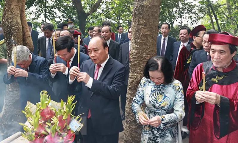 Chủ tịch nước Nguyễn Xuân Phúc, các vị lãnh đạo Đảng, Nhà nước, tỉnh Phú Thọ đã thành kính dâng hương, hoa, lễ vật tưởng nhớ, tri ân công đức của các Vua Hùng đã có công dựng nước, cầu cho xã tắc thịnh vượng, quốc thái dân an, bách gia trăm họ vạn đại trường tồn, đất nước ngày càng vững mạnh, hùng cường.