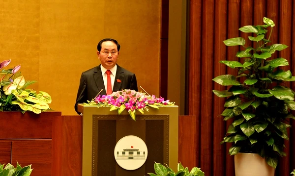 Chủ tịch nước Trần Đại Quang trình bày Tờ trình đề nghị Quốc hội miễn nhiệm chức vụ Thủ tướng Chính phủ