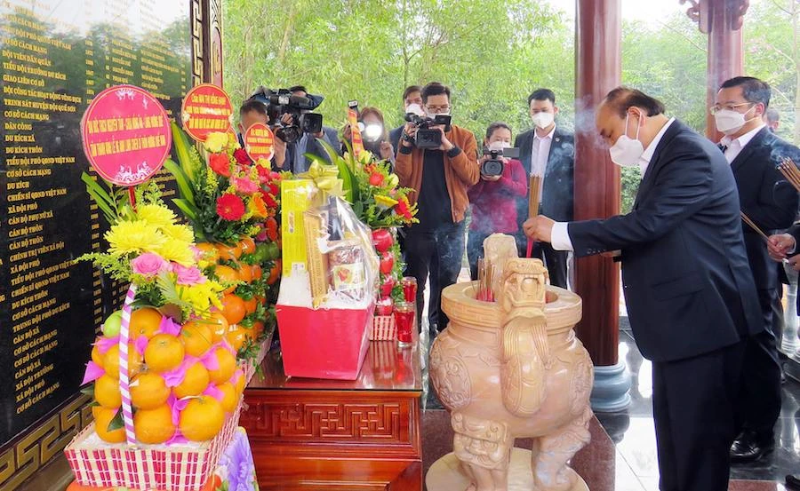 Chủ tịch nước Nguyễn Xuân Phúc dâng hương các anh hùng liệt sĩ. Ảnh: TN