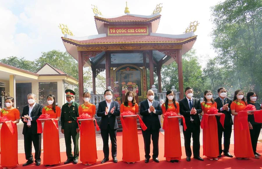Chủ tịch nước Nguyễn Xuân Phúc dự lễ khánh thành Nhà bia ghi danh liệt sĩ thôn Hương Quế Nam. Ảnh: TN