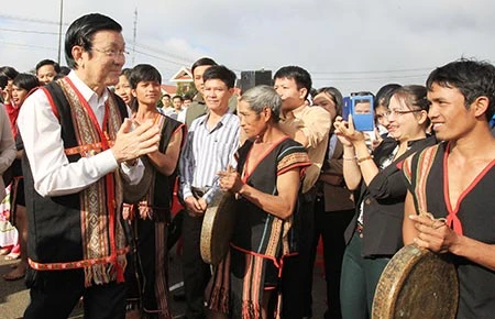 Chủ tịch nước Trương Tấn Sang thăm huyện Kon Plông. Ảnh: TTXVN