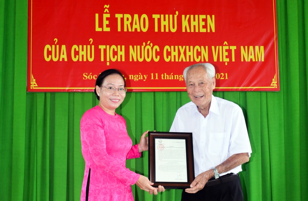 Ngày 11-6, UBND tỉnh Sóc Trăng đã tổ chức Lễ trao Thư khen của Chủ tịch nước CHXHCN Việt Nam cho cụ Trần Cang (98 tuổi, dân tộc Hoa, ngụ xã Phú Tâm, huyện Châu Thành).