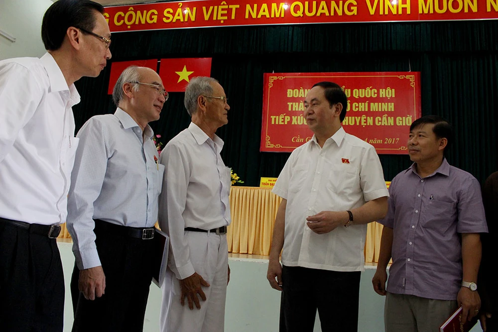 Sáng ngày 26-4, Chủ tịch nước Trần Đại Quang cùng đoàn đại biểu Quốc hội (ĐBQH) TP.HCM tiếp xúc với cử tri huyện Cần Giờ trước kỳ họp thứ 3 (QH khóa XIV).