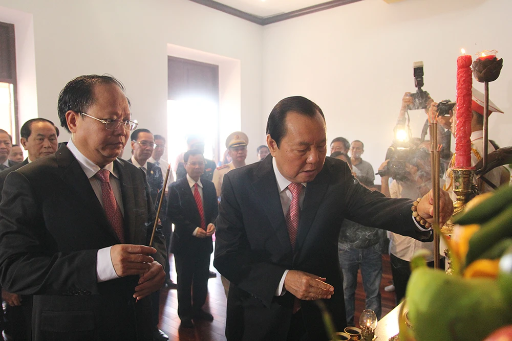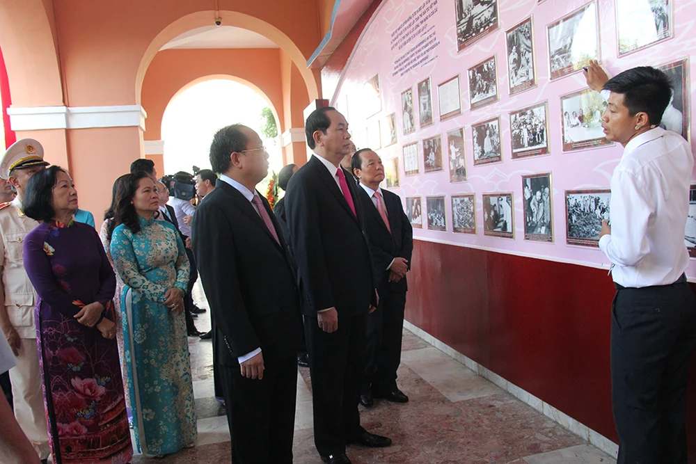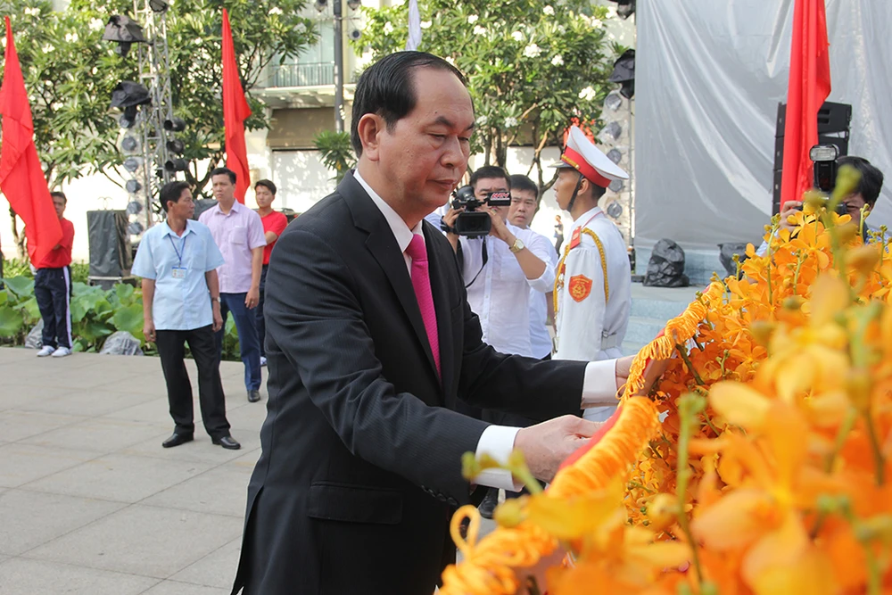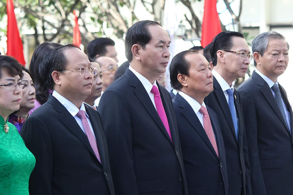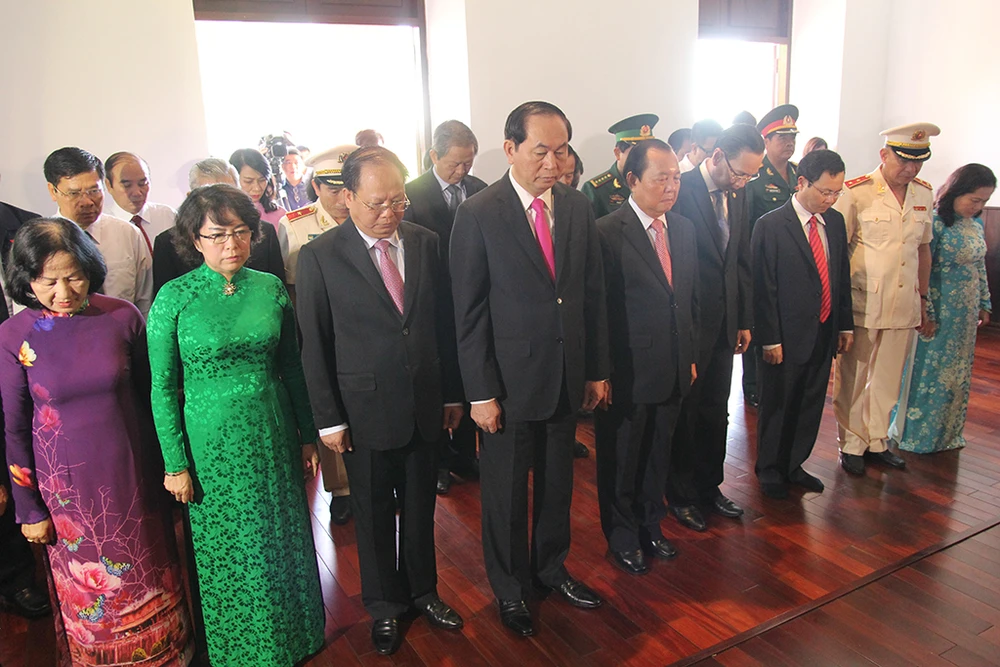 Kính cẩn nghiêng mình trước anh linh Chủ tịch Hồ Chí Minh, Chủ tịch nước Trần Đại Quang cùng với lãnh đạo TP thắp những nén hương bày tỏ lòng thành kính, tưởng nhớ công lao vĩ đại của Bác đối với sự nghiệp cách mạng đấu tranh giải phóng dân tộc, thống nhất đất nước.