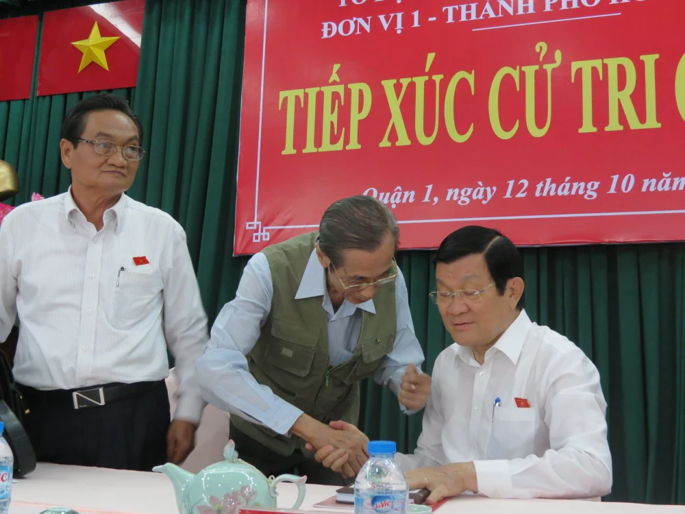Chủ tịch nước Trương Tấn Sang tiếp xúc với cử tri quận 1. Ảnh: TÁ LÂM
