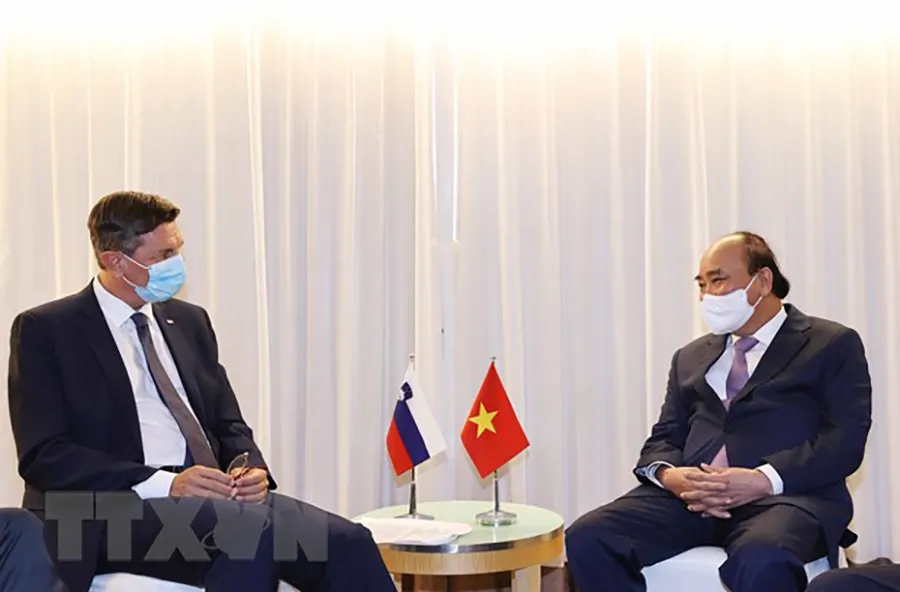 Chủ tịch nước Nguyễn Xuân Phúc gặp Tổng thống Slovenia Borut Pahor. Ảnh: TTXVN
