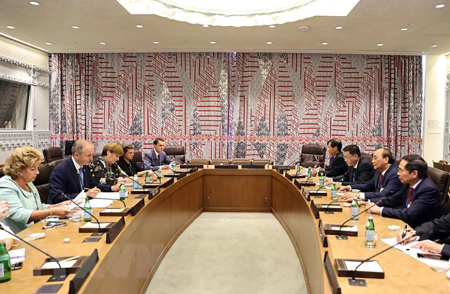. Tại cuộc gặp Ngài Micheal Martin, Thủ tướng Ireland, nước Chủ tịch luân phiên của Hội đồng Bảo an Liên Hợp Quốc tháng 9-2021, hai nhà lãnh đạo bày tỏ vui mừng khi ngay cả trong bối cảnh dịch COVID-19, kim ngạch thương mại hai chiều giữa hai nước năm 2020 vẫn đạt 4,2 tỉ USD.