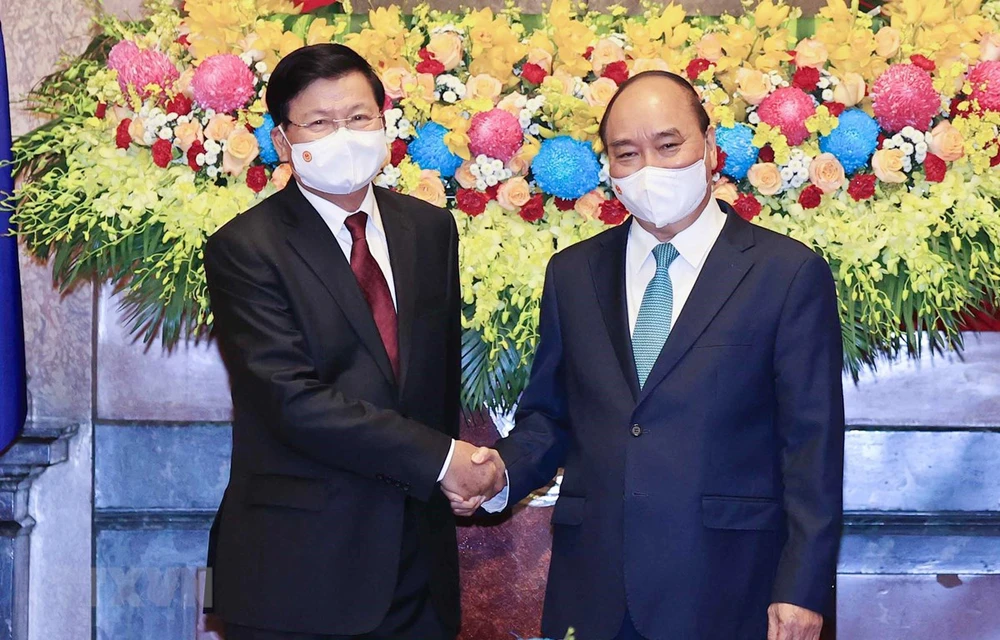 Chủ tịch nước Nguyễn Xuân Phúc hội kiến Tổng Bí thư, Chủ tịch nước Lào Thongloun Sisoulith ngày 29-6-2021 tại Hà Nội. Ảnh: TTXVN