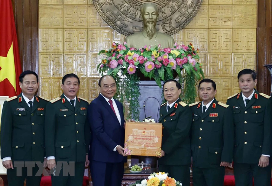 Chủ tịch nước Nguyễn Xuân Phúc, Chủ tịch Hội đồng Quốc phòng và An ninh, Thống lĩnh lực lượng vũ trang nhân dân thăm và kiểm tra công tác ứng trực, sẵn sàng chiến đấu tại Bộ tư lệnh Quân khu 5. Ảnh: TTXVN