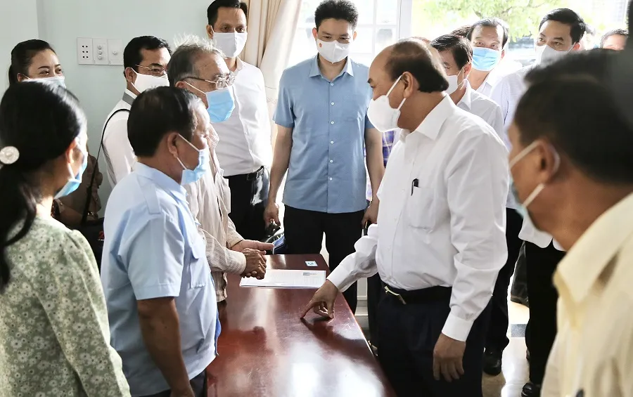 Chủ tịch nước Nguyễn Xuân Phúc trò chuyện với cử tri huyện Củ Chi. Ảnh: HOÀNG GIANG