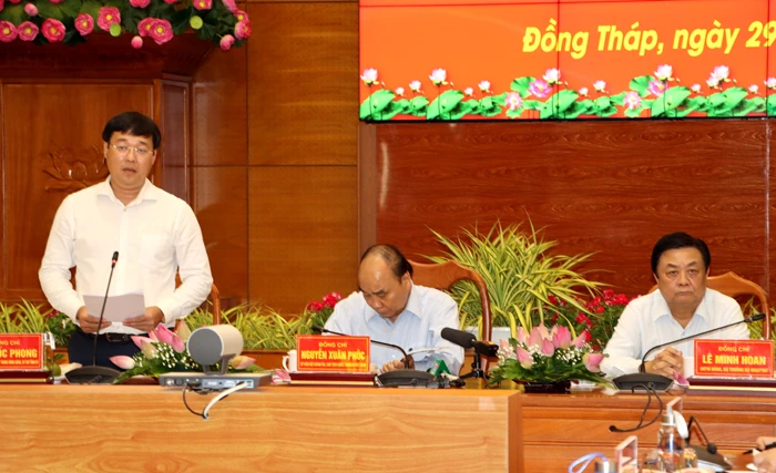 | Kiến nghị Trung ương tiếp tục ưu tiên đầu tư cao tốc Tại buổi làm việc, Bí thư Tỉnh ủy Lê Quốc Phong đề xuất Trung ương tiếp tục quan tâm ưu tiên nguồn vốn đầu tư phát triển hạ tầng giao thông trên địa bàn, đặc biệt là các tuyến cao tốc; nâng cấp cửa khẩu quốc tế Thường Phước thành cửa khẩu quốc tế đường bộ, đường sông; cặp cửa khẩu Thường Phước (Đồng Tháp) - KohRoKa (Prây-veng) được bổ sung vào Nghị định thư vận tải đường bộ giữa hai nước Việt Nam và Campuchia… Đồng Tháp kiến nghị thành lập “Trung tâm đầu mối nông sản và thuỷ sản nước ngọt vùng Đồng Tháp Mười”. Đồng Tháp kiến nghị Trung ương xem xét, ban hành Nghị quyết mới về phát triển kinh tế tập thể; có chính sách ưu đãi miễn tiền thuê đất đối với Hợp tác xã phi nông nghiệp, chính sách về thuế 5% trên tổng số tiền lãi được chia của thành viên hợp tác xã để tạo thuận lợi cho Hợp tác xã hoạt động. |