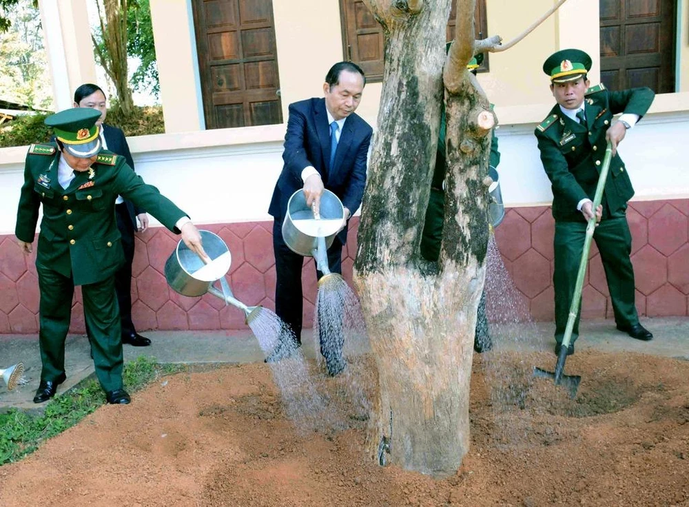 Chủ tịch nước trồng cây lưu niệm tại Đồn biên phòng 721.
