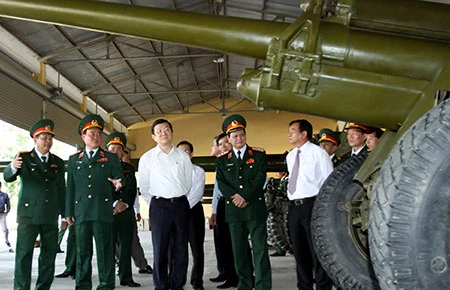 Chủ tịch nước Trương Tấn Sang thăm, làm việc với Lữ đoàn pháo binh 75, Quân khu 7 tại TP Biên Hòa, ĐồngNai. Ảnh: TTXVN
