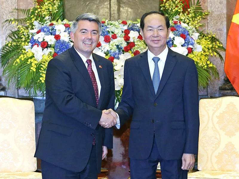 Chủ tịch nước Trần Đại Quang tiếp thượng nghị sĩ Cory Gardner. Ảnh: TTXVN