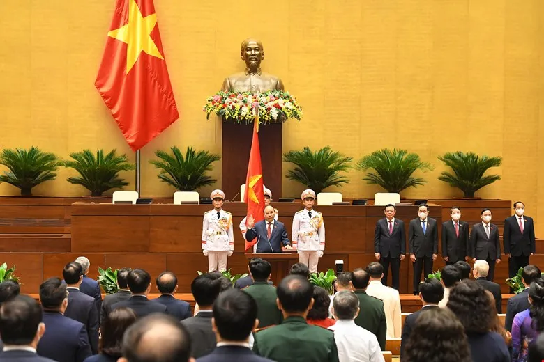 “Tôi xin chân thành cảm ơn đồng chí Tổng Bí thư Nguyễn Phú Trọng, cùng các vị lãnh đạo tiền nhiệm về những đóng góp lớn lao cho Đảng, Nhân dân và đất nước chúng ta” - Chủ tịch nước nói và chúc mừng các vị đại biểu Quốc hội khóa XV.