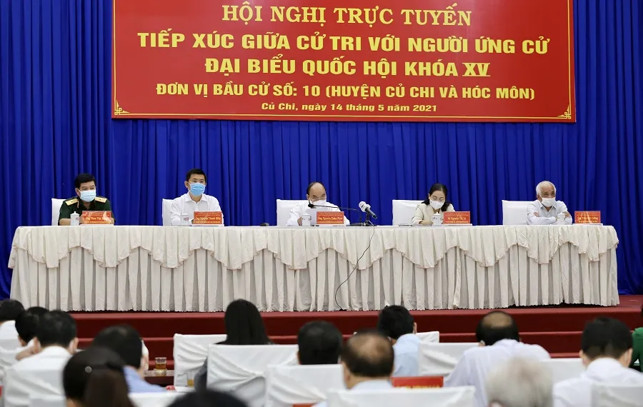 Sáng 14-5, Chủ tịch nước Nguyễn Xuân Phúc cùng các ứng cử viên đại biểu Quốc hội (ĐBQH) khóa XV, đơn vị bầu cử số 10 đã có buổi tiếp xúc cử tri huyện Củ Chi, TP.HCM.