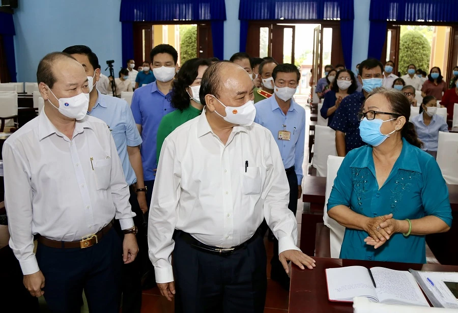 Chủ tịch nước Nguyễn Xuân Phúc trao đổi với cử tri huyện Củ Chi. Ảnh: HOÀNG GIANG