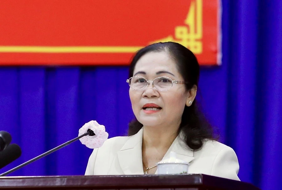 Chủ tịch HĐND TP.HCM Nguyễn Thị Lệ phát biểu tại buổi tiếp xúc. Ảnh: HOÀNG GIANG