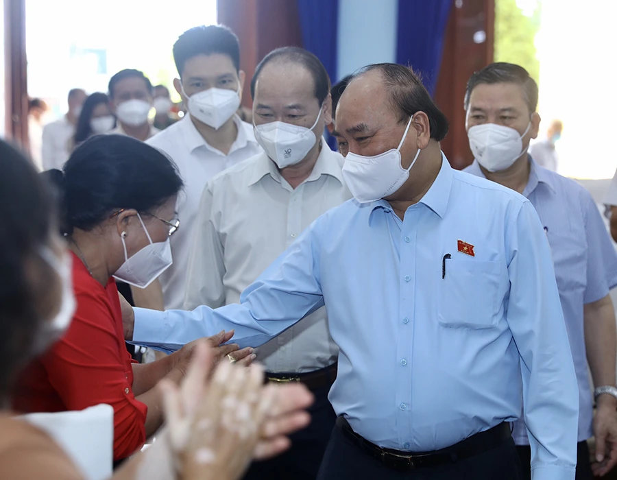 Chủ tịch nước Nguyễn Xuân Phúc tiếp xúc với cử tri huyện Củ Chi, TP.HCM. Ảnh: TÁ LÂM