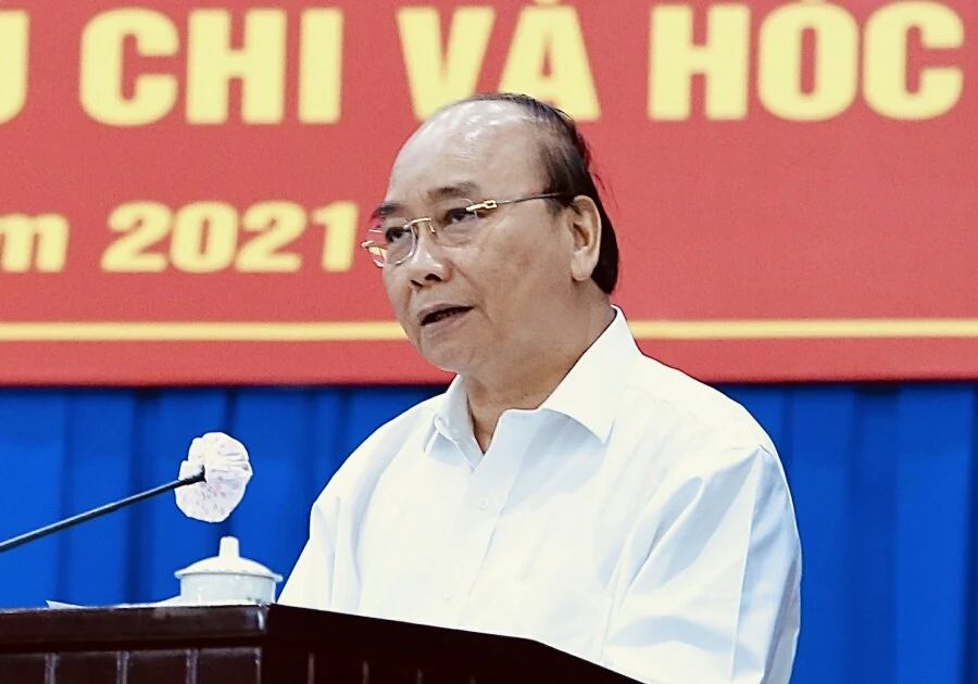 Chủ tịch nước Nguyễn Xuân Phúc nói về định hướng phát triển huyện Hóc Môn và Củ Chi. Ảnh: HOÀNG GIANG