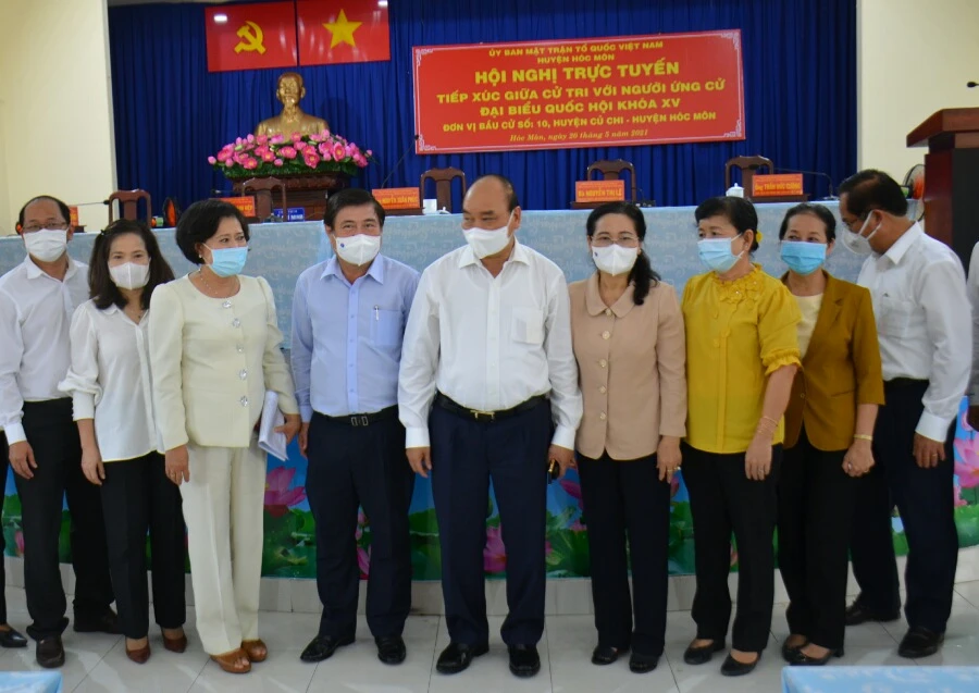 Chiều 20-5, Chủ tịch nước Nguyễn Xuân Phúc cùng các ứng cử viên đại biểu Quốc hội khóa XV, đơn vị bầu cử số 10 đã có buổi tiếp xúc trực tuyến với hơn 700 cử tri 12 xã, thị trấn của huyện Hóc Môn, TP.HCM.